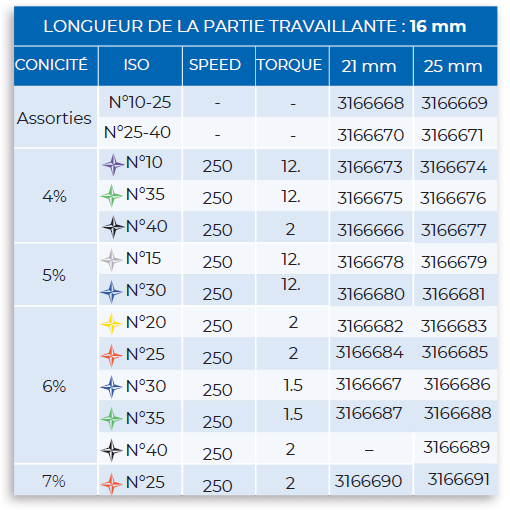 S’adaptent à tous les moteurs et contre-angles endodontiques faisant la rotation continue.